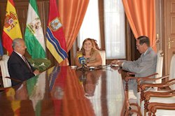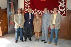 Con posterioridad esta comitiva se dirigió al Palacio Municipal donde tendría efecto la recepción oficial por parte de la Sra. Alcaldesa de la ciudad, Dña. Irene García Macías quien estuvo acompañada por miembros de la Corporación municipal representantes de los diferentes partidos políticos locales. La primera edil dio la bienvenida a los asistentes e intercambio recuerdos con los embajadores premiados, luego, las dos entidades organizadoras junto con los dos embajadores y la Alcaldesa se reunieron en el despacho de la misma para concretar diferentes cuestiones sobre el futuro de la conmemoración de la primera circunnavegación Sanlúcar 2019-2022.