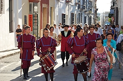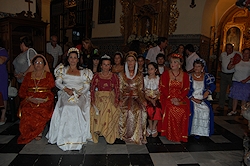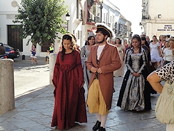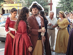Por la tarde, y tras un almuerzo en Bajo de Guía con ambas entidades, los actos se reanudaban con una misa en la Parroquia de La O, oficiada por el reverendo padre D. Juan Jacinto. Diferentes grupos de teatro de la ciudad y asociaciones de mujeres que habían participado en la confección de los trajes de la época, escenificaron el regreso de los navegantes a Sanlúcar hace ahora 489 años y dieron con ello colorido y ambientación del siglo XVI. La misa fue especialmente bella y además de cantada por el Orfeón Santa Cecilia tuvo distintos momentos en latín y la participación del Comendador de la ciudad y el propio “Elcano” leyendo la carta que desde Sanlúcar escribiría al rey de España.