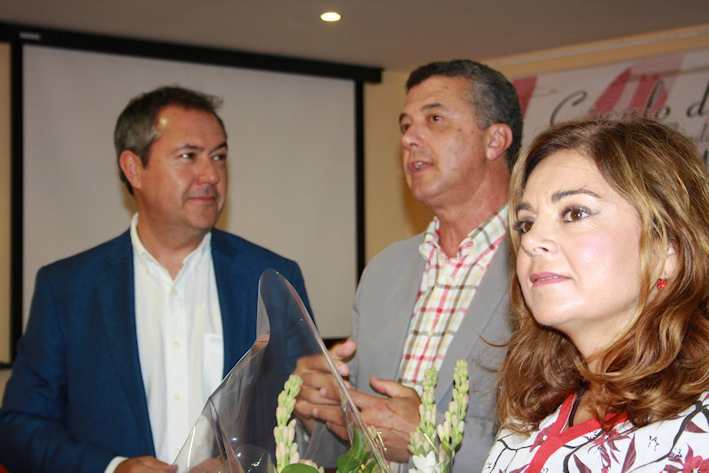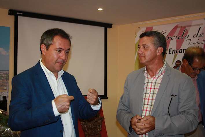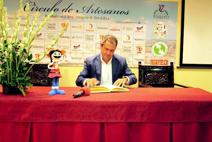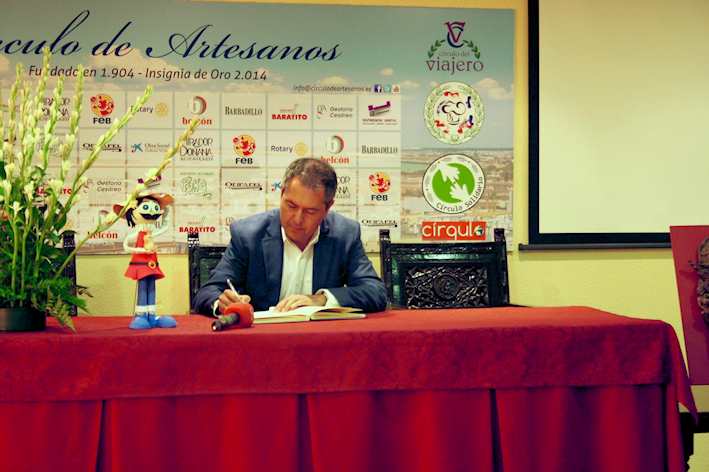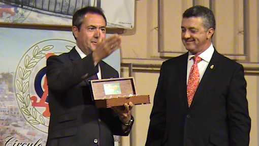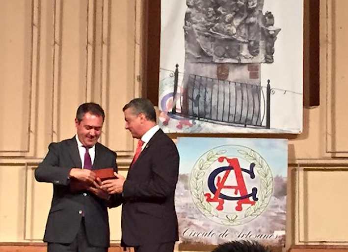 Proclamado el premiado por los méritos expresados en el acta, se procedió a la entrega del mismo recogiendo el Premio el Excmo. Alcalde de la Ciudad, Sr. D. Juan Espadas Cejas,de la mano del Presidente del Círculo de Artesanos.