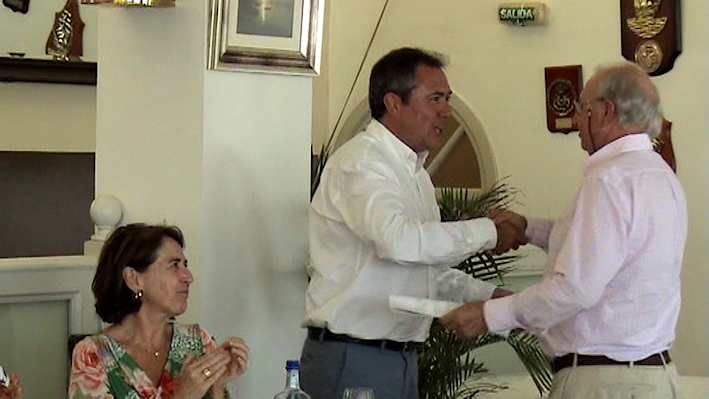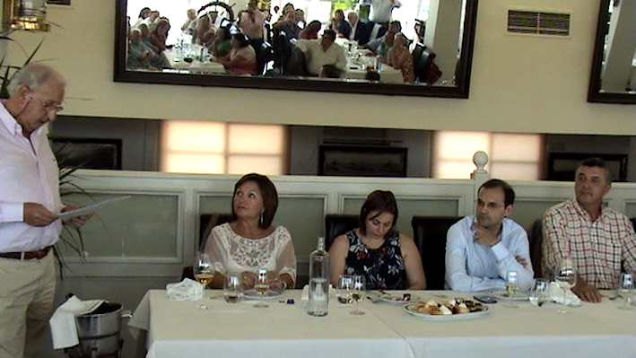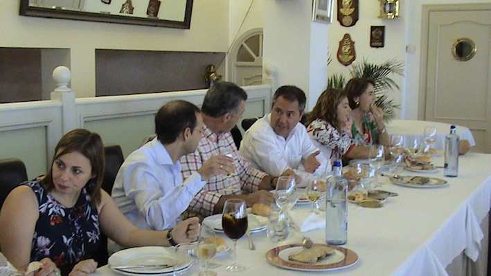 Seguidamente se trasladaron al restaurante de la zona de Bajo de Guía, Mirador de Doñana, en donde se tenía concertada una comida de convivencia en honor del alcalde premiado en nombre de la ciudad de Sevilla, a la que asistió también el Alcalde de Sanlúcar de Barrameda y un grupo muy importante de socios y simpatizantes. En dicho acto tomó la palabra el socio y Vocal de la Junta Directiva, D. José Gómez Villegas, quien recalcó la importancia de la unión Sevilla-Sanlúcar en la celebración de este acontecimiento magno ya que es la historia y el río Guadalquivir quienes se encargan de que necesariamente sea así.