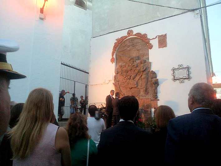 Finalizado este acto la comitiva se dirigió al Monumento a los Marineros de la Primera Vuelta al Mundo que el Círculo de Artesanos colocó en la calle Escuelas en el año 2.012, donde se depositó una corona de laurel.