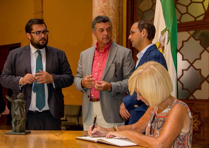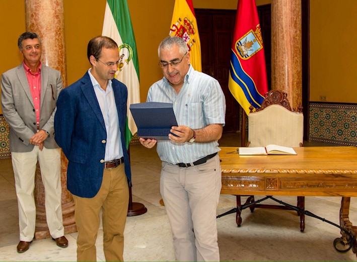 Sobre las 13.00 horas se llevó a cabo la recepción de los premiados en el Excmo. Ayuntamiento de la ciudad por el Alcalde, D. Víctor Mora, finalizando con la firma en el Libro de Honor e intercambio de regalos institucionales.