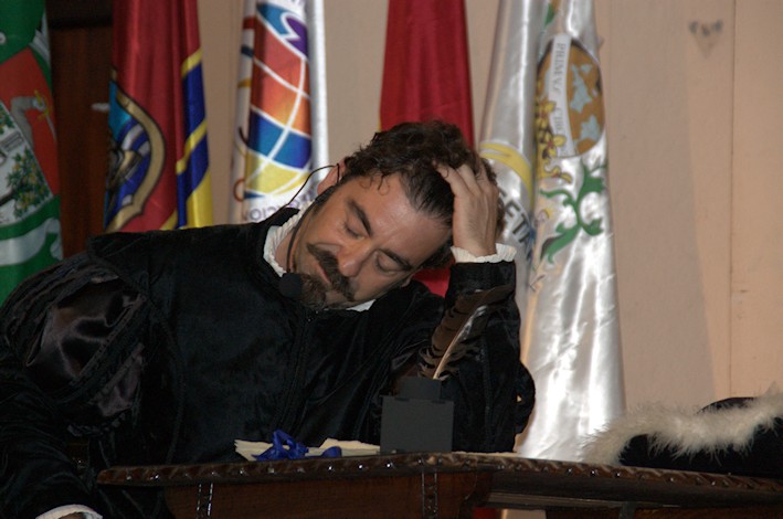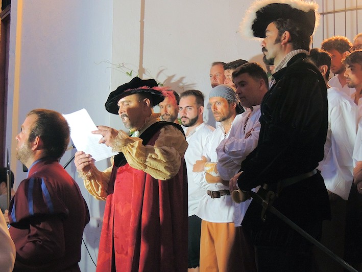 Leída la carta al Emperador por el figurante Julio Rodríguez en su papel de Elcano, continuó el Presidente del Círculo con su discurso reivindicativo de los actos que deberían celebrarse con motivo del V Centenario, la propuesta al Pleno de que esta fecha del 6 de Septiembre se declare fiesta local y la intención de traer a las aguas de Sanlúcar al buque escuela Juan Sebastián De Elcano.