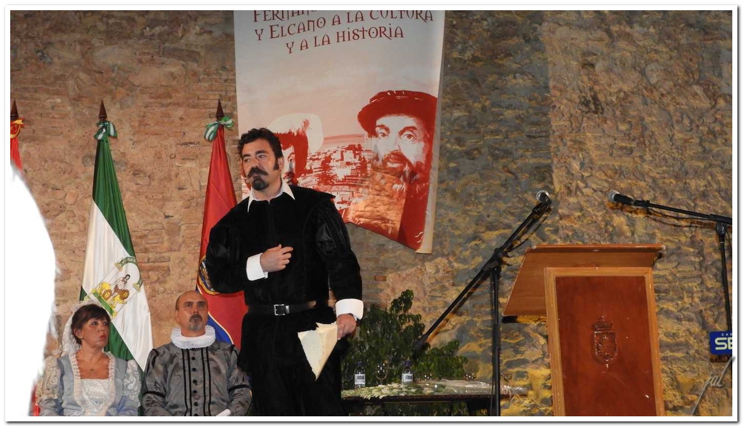 Por el figurante que encarnaba a Juan Sebastián Elcano se teatralizó la escritura de la carta que el navegante dirigiría al Emperador Carlos V escrita en la nao Victoria tras su llegada a Sanlúcar contándole al Rey su viaje y sus vicisitudes y el gran descubrimiento que habían hecho "hemos descubierto y dado la vuelta a toda la redondez del mundo".