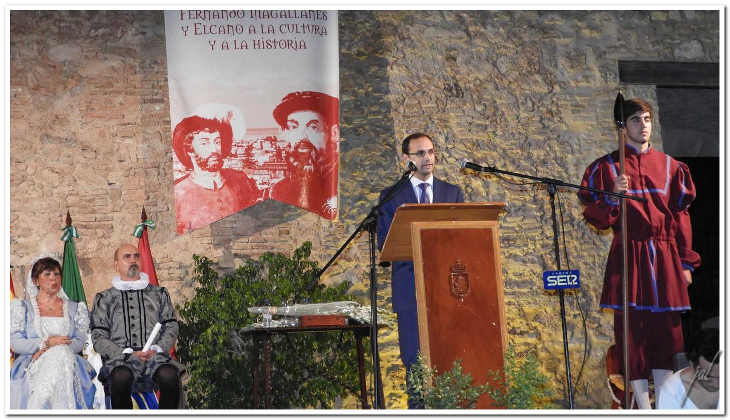 ….., en esta ciudad de navazos, de mayetos y gentes de la mar, en esta ciudad tartésica, conventual, cosmopolita y universal de Sanlúcar de Barrameda, donde huele a manzanilla y a sal, de donde zarparon centenares si no miles de expediciones hacia el Nuevo Mundo, debemos comprometernos entre todos a liderar la conmemoración de la gesta de Magallanes y Elcano, no solo como recordatorio de los valores de aquella época, sino dando a conocer otros valores de nuestros tiempos que también están presentes en el hecho histórico y en sus fundamentos, como son: emprendimiento, conocimiento, reto, liderazgo, innovación, empresa, capacidad, cooperación, diversidad y la globalización…
