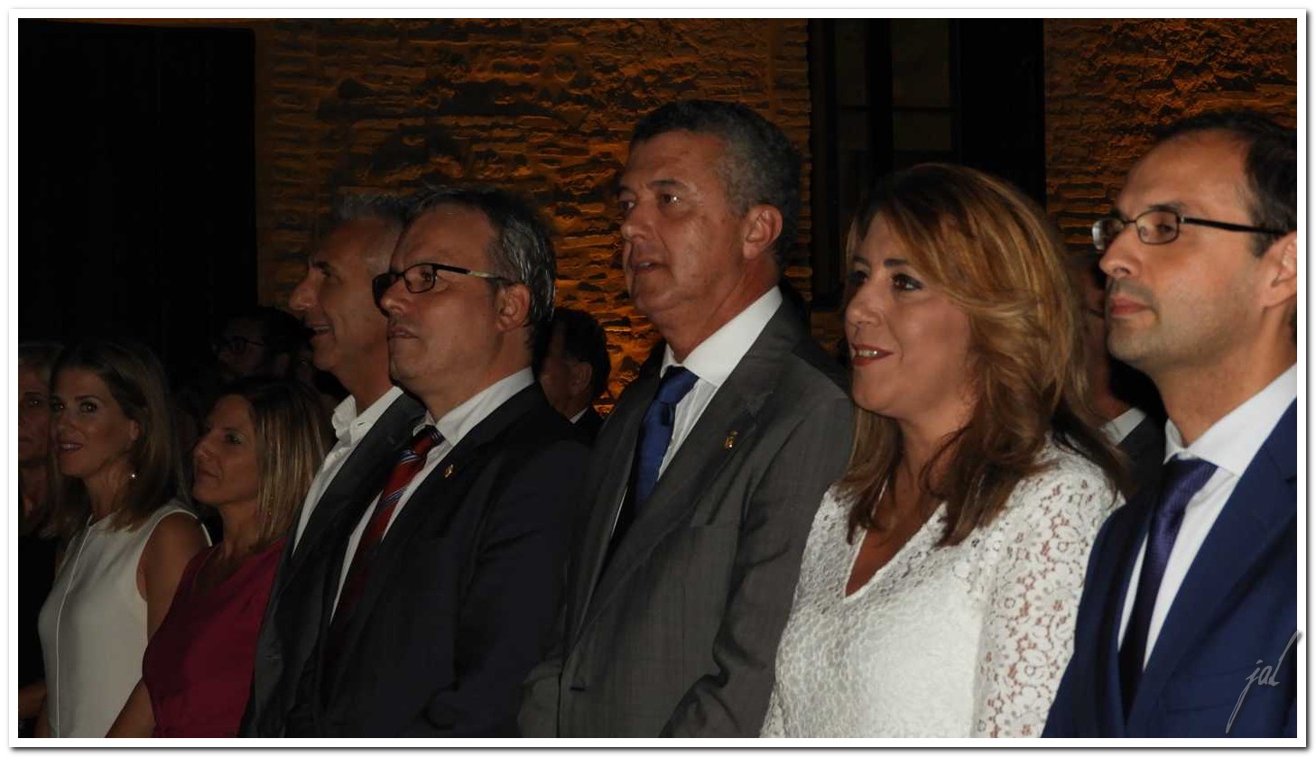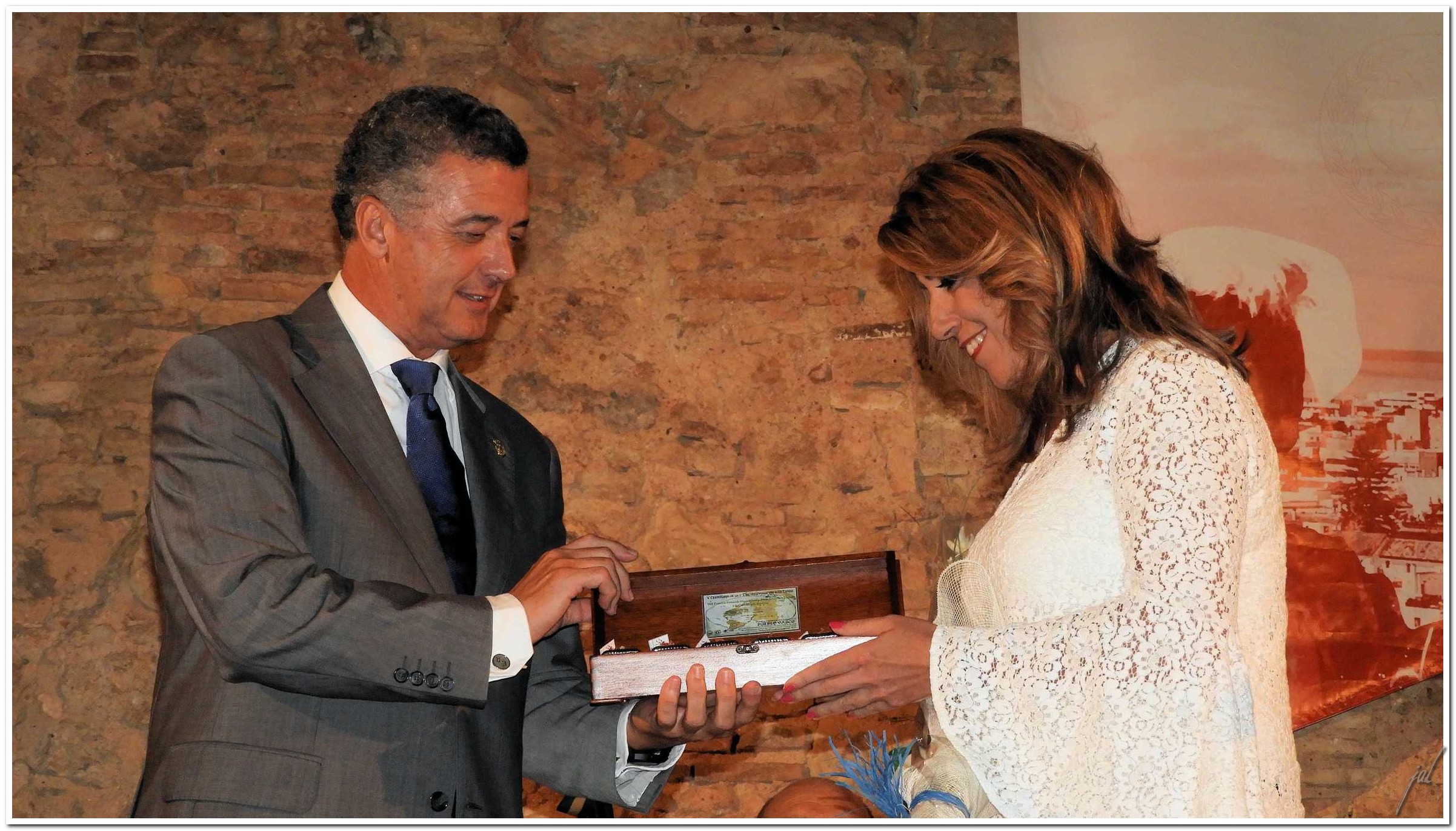 Al acto institucional de la entrega de premios, que se celebró en el Patio de Armas del Castillo de Santiago, asistieron, además de los premiados y la Junta Directiva del Círculo de Artesanos, el Ilmo. Sr. Alcalde de la ciudad y representantes de la mayoría de los partidos políticos que forman parte del Pleno de nuestro Excmo. Ayuntamiento, la Excma. Sra. Presidenta de la Diputación, varios cargos de la Junta de Andalucía, el Sr. Subdelegado del Gobierno, Sres. Diputados nacionales y autonómicos, el Sr. Subdelegado de Defensa y otras autoridades civiles y militares, representantes de la Confederación de Empresarios, presidentes y presidentas de diversas asociaciones y organizaciones locales y un importante número de ciudadanos. Actuando como maestro de ceremonias el Secretario del Círculo, Antonio Román, se comenzaría con el Himno de la Manzanilla.
